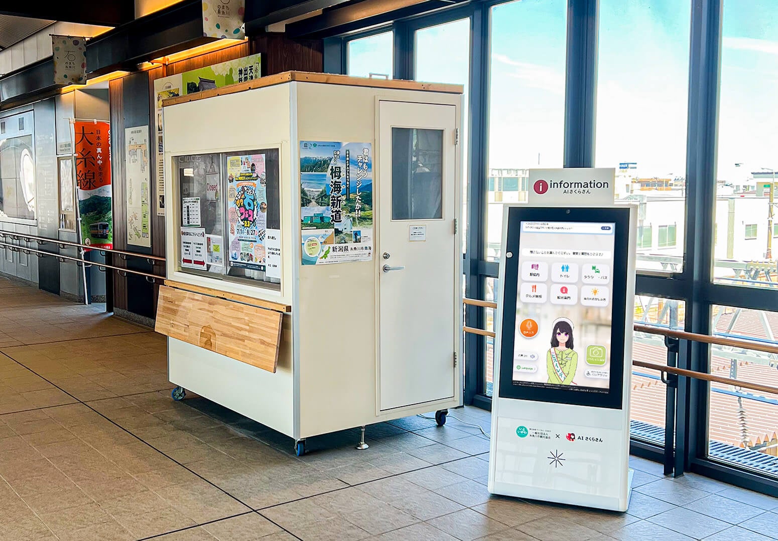 今回導入されたアバター接客さくらさんでは、駅改札外にある糸魚川市観光案内所にて、今まで土日のみ行っていた案内が、AIさくらさんを通して365日の案内が可能になります。