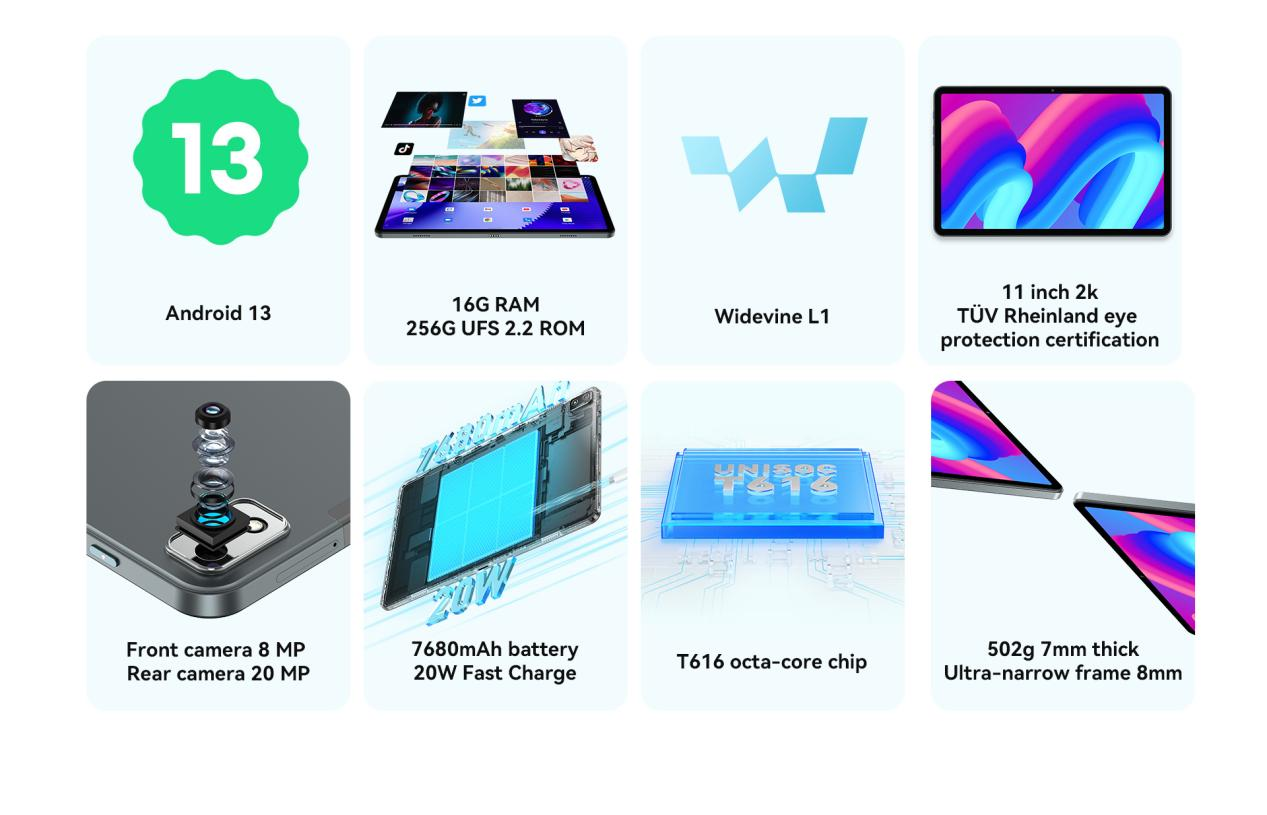 1. 11インチの2K(2000*1200)の超高解像度フルスクリーン、1670万色