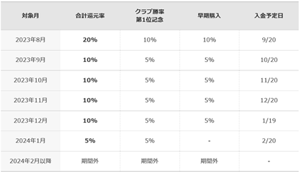 お一人様の購入口数4口分までを対象に、購入金額の最大10%がキャッシュバックされます。
