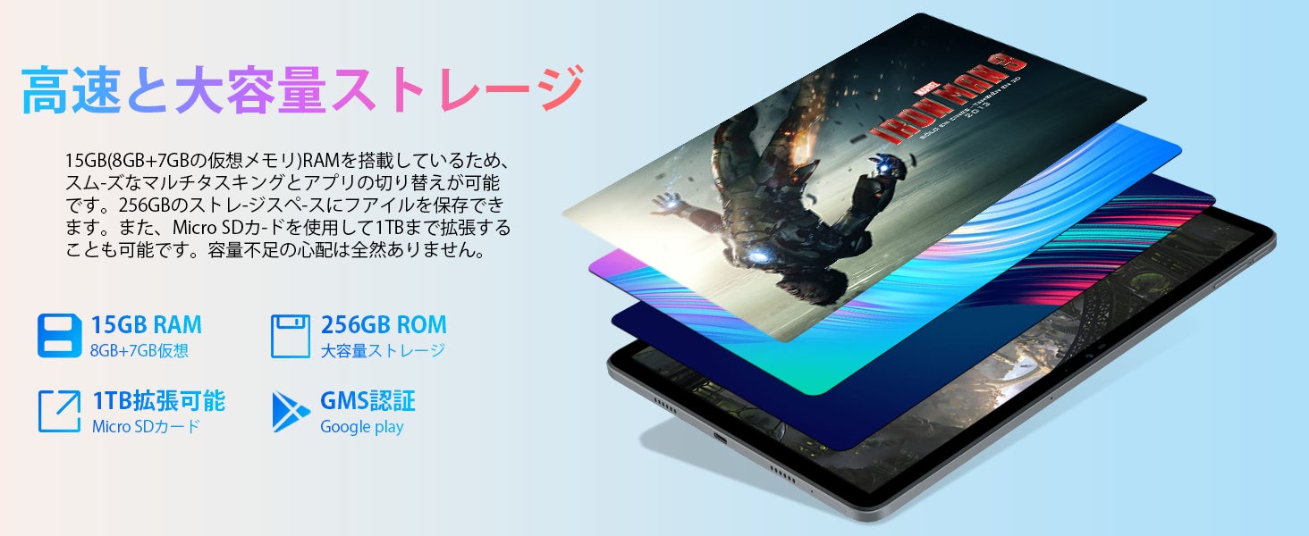 Android タブレット 10インチ wi-fiモデル,15GB RAM(8GB+7GB拡張)+256GB ROM+1TB拡張可能、UnisocT616 8コアCPU、10.4インチ 2Kディスプレイ+WideVine L1+4G LTEモデル, 16MP/8MPカメラ+8300mAh+児童守護+画面分割+Hi-Res Audio+TUV ブルーライト認証
