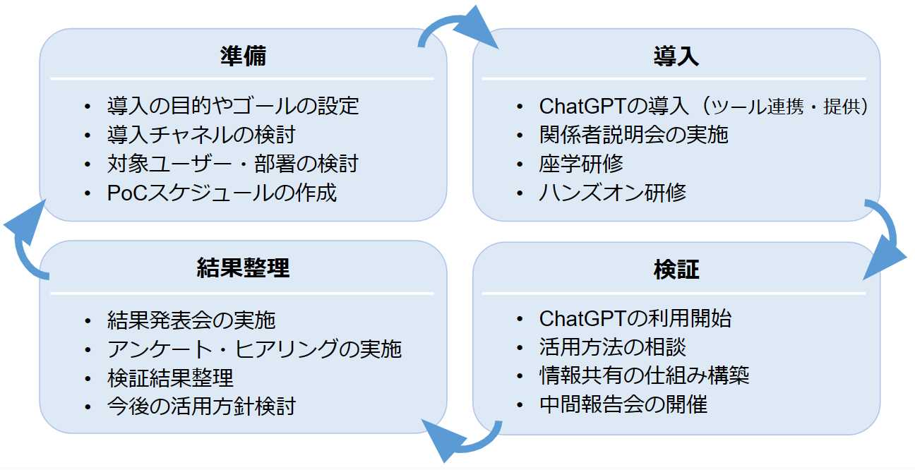 「ChatGPTスタートガイド」を導入企業様向けにご提供しています。このガイドは「ChatGPTって何?」という初めての方から、「ChatGPTを使ったことはあるけど自己流で利用している」という経験者まで幅広くサポートをしています。