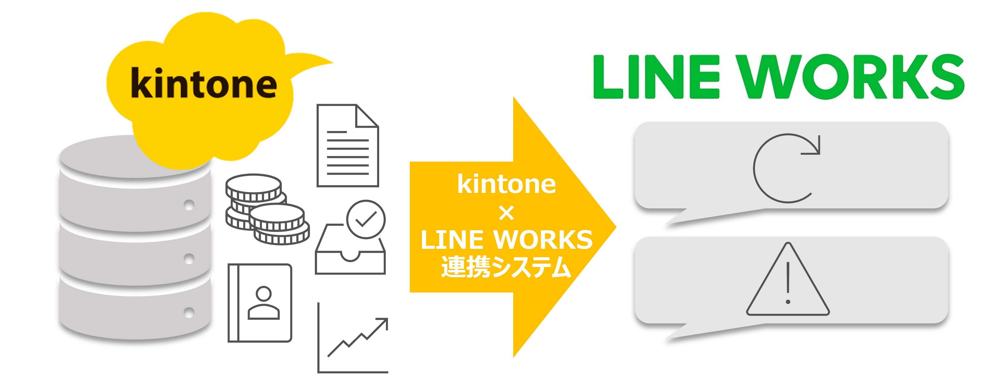 社内のデータ管理にはkintone、従業員同士のコミュニケーションにはLINE WORKS、と使い分けている企業様も多いですが、その場合はkintoneとLINE WORKSを連携することで上記の課題を解決できます!