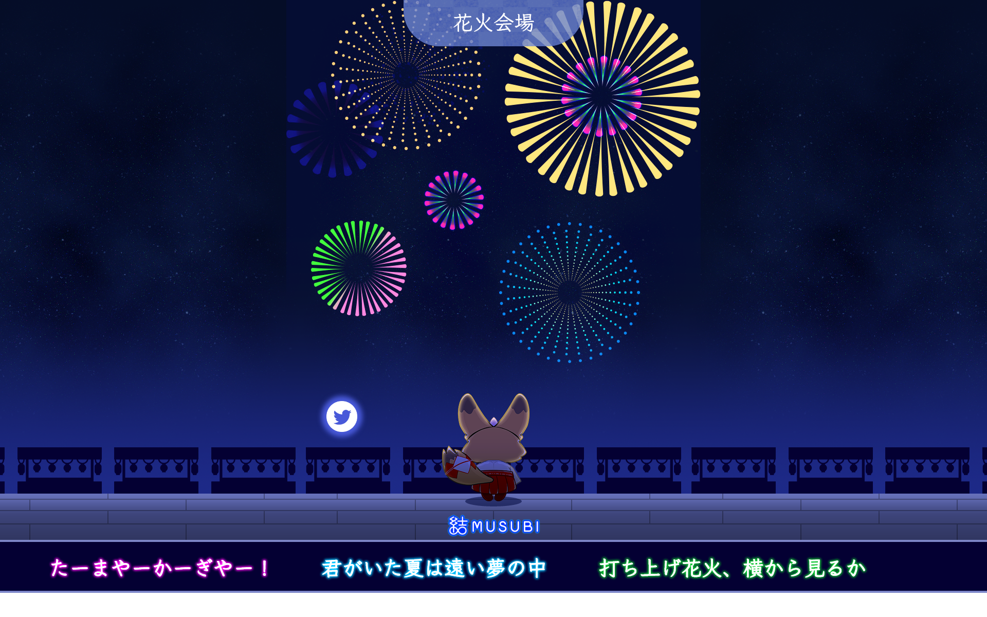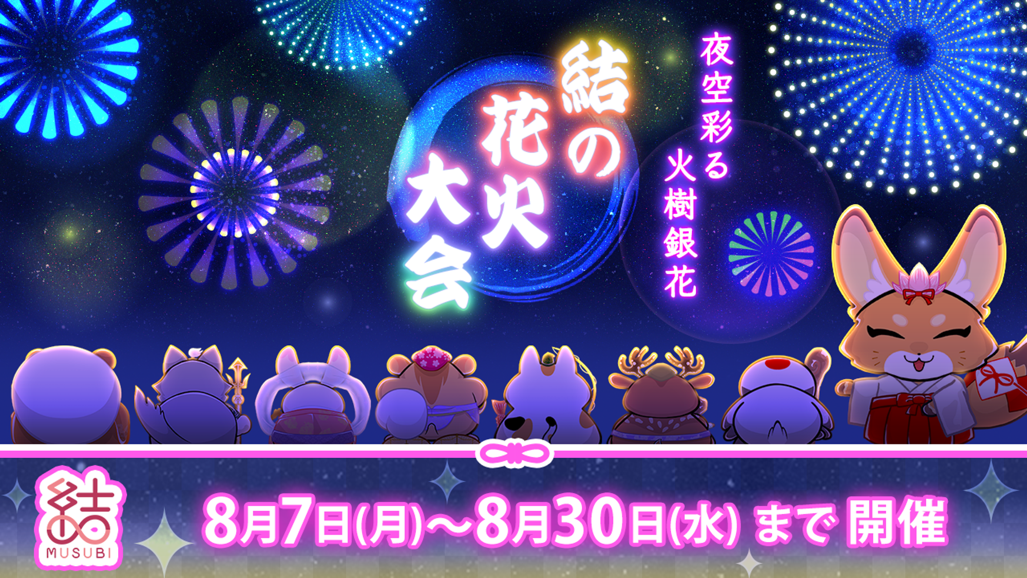 オンラインで夏祭り気分が味わえる「結・花火大会」を開催いたします。イベント期間中は結・MUSUBIサービス内に花火会場が設けられ、打上時間になると花火が打ち上がります。打ち上げ前に会場でお願い事を記入することができ、打ち上げ中に花火と一緒に流れる仕組みです。