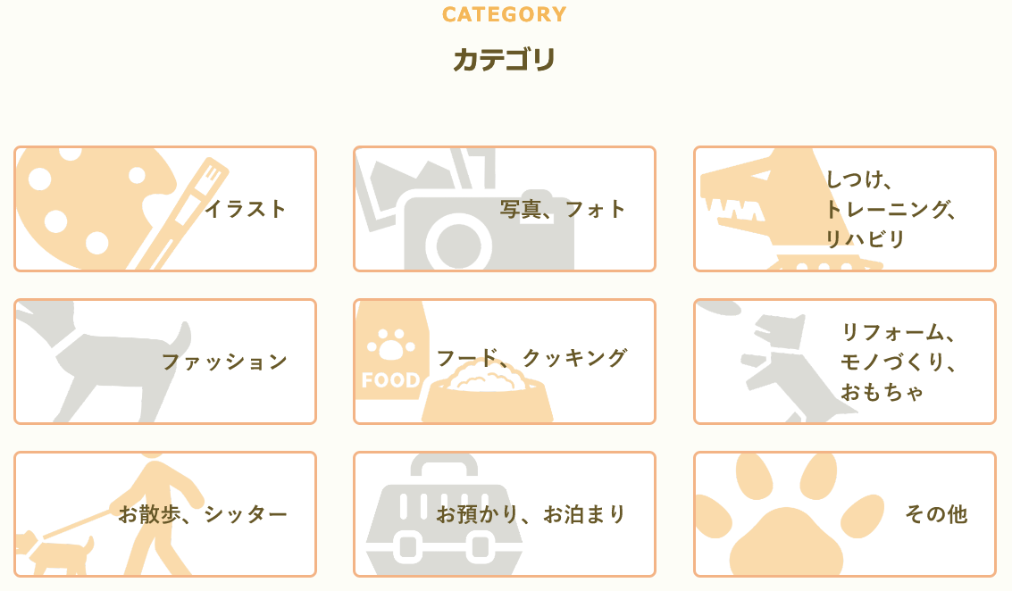 というお悩みを解決するために、日本初のペットのためのスキルマーケットを運営しています。