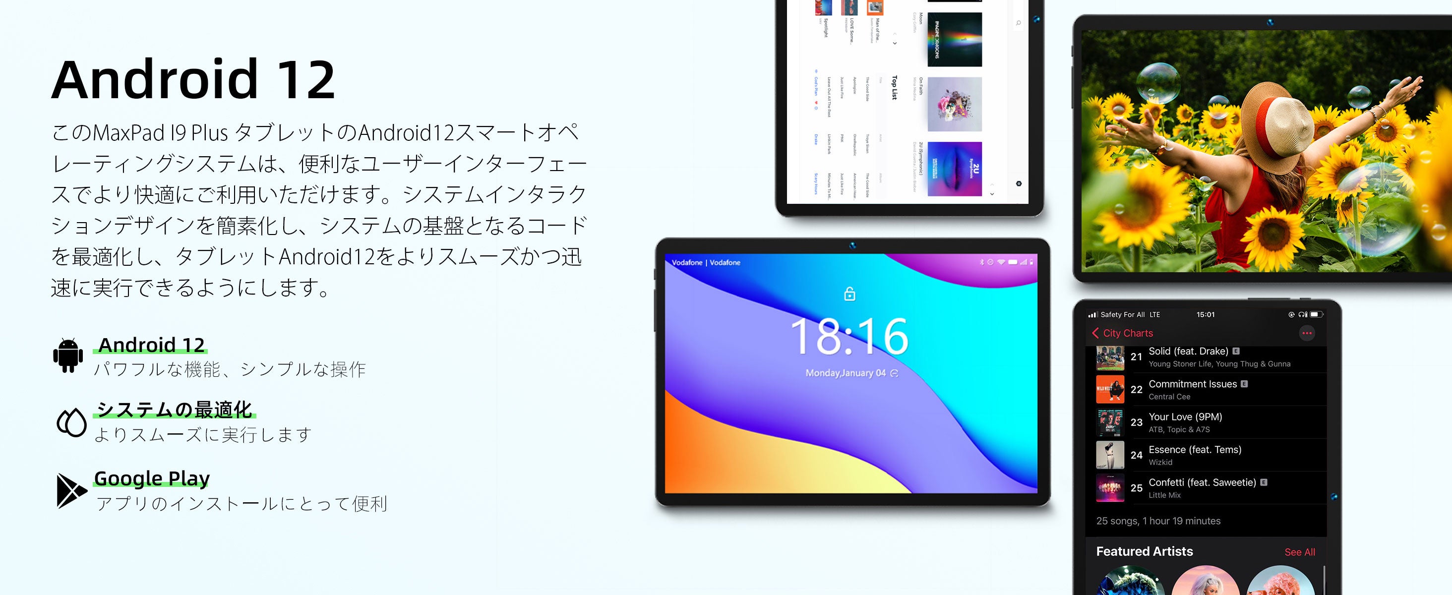 BMAX I9Plus タブレットは最新のAndroid 12 システムを搭載しています。 元の Android 11 システムと比較して、より安定した動作能力を備えています。 元の 4GB+64GB メモリから現在の 8GB+64GB メモリに拡張します。 収納スペースが大きくなったので、生活に残しておきたい写真、音楽、電子書籍をより多く保存できます。