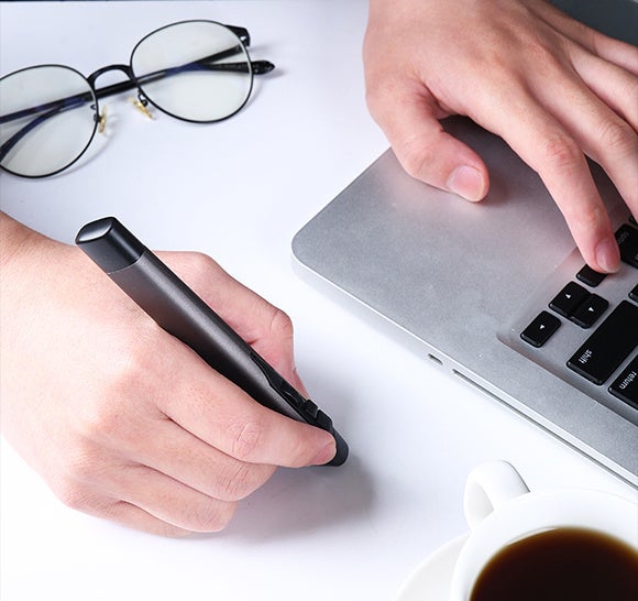 ペン型のマウス「PR-18」であれば、作業スペースやマウスの取り回しに悩むことなく、直感的な操作で体への負担も軽減できます。また、無線接続対応&コンパクトなデザインで携帯性に優れ、オフィスからプライベートまで幅広く活用できます。