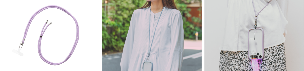 お気に入りのカラーがきっと見つかる9色展開のベーシック丸紐タイプ。長さ調節可能アジャスター付き。小物をかけられるストラップパーツ付属で、推し活の定番アイテムであるペンライトやうちわなども付けることができます。