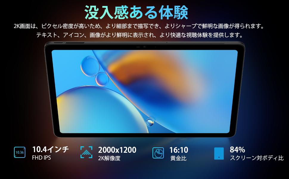 DOOGEE T20S android タブレット 新型 は10.4インチ2000*1200解像度2K全視野角スクリーンで、広角視野と高解像度の画像は完璧な視覚効果をもたらし、すべてのビデオ鑑賞を楽しくします。