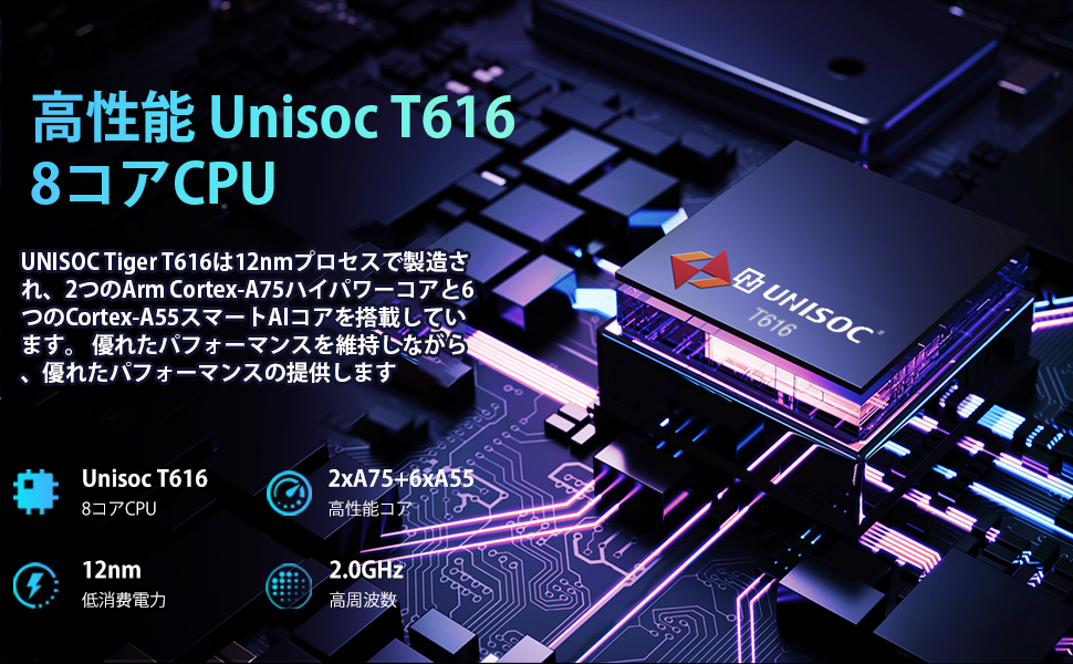 DOOGEE T20S タブレット 10インチ wi-fiモデルは12nmプロセスの8コアUNISOC T616高速プロセッサーを搭載し、A75アーキテクチャーのコアを採用、最大2.0Ghzの周波数をサポートする。 強力なMali G57ゲーミンググレードグラフィックスプロセッサーを搭載し、日々のエンターテインメント用途の需要に応えることができる。