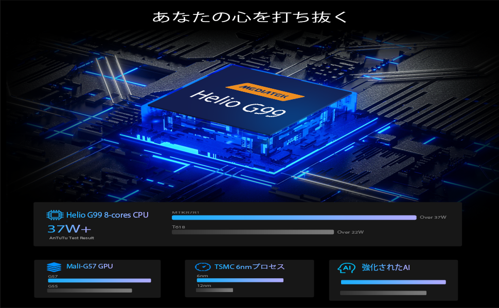 🌟 高性能8コアCPU:MediaTek Helio G99