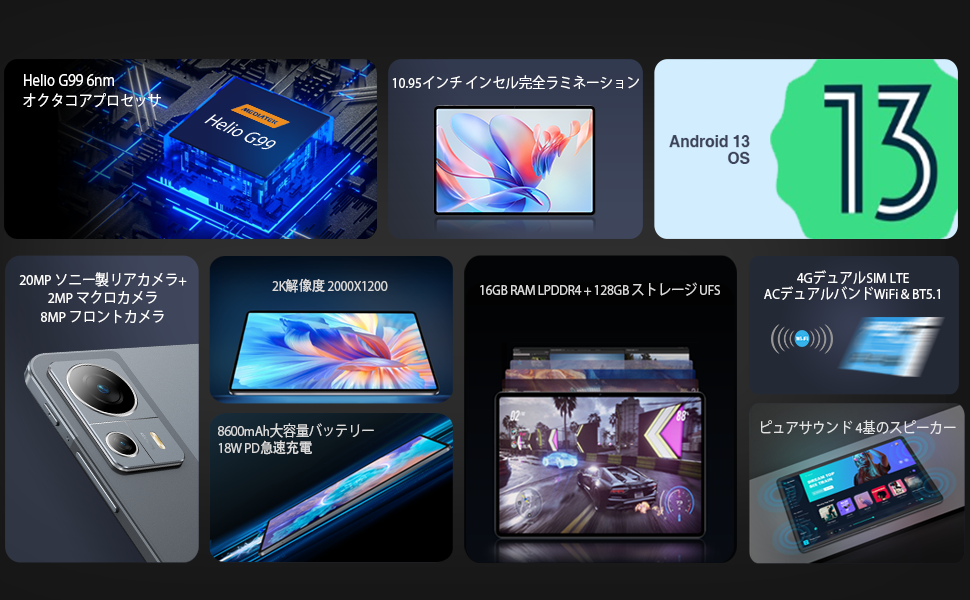 🌟 豊富なストレージ:16GB(8GB + 8GB拡張)RAM + 128GB ROM + 1TB拡張