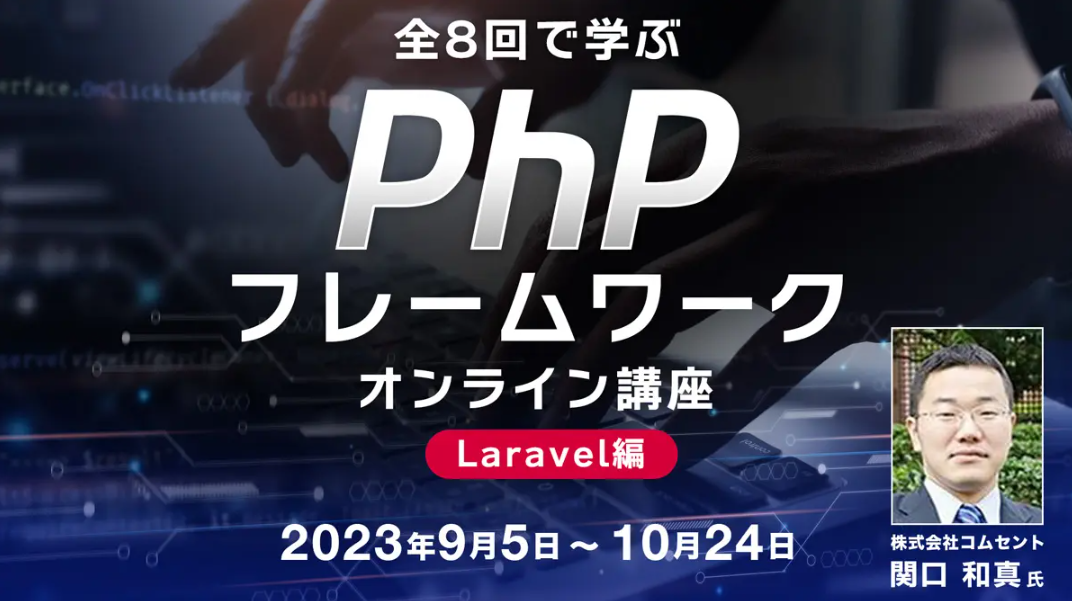 動的なWebサイトやWebアプリケーション開発によく使われるサーバーサイドのスクリプト言語「PHP」。そんなPHPでWebアプリケーションを開発する際に使用されるツールセットをPHPフレームワークと言います。今回の講座では、PHPフレームワークの中でも人気の高い「Laravel」を基礎から学んでいただきます。さらなるスキルアップをめざすデザイナーやコーダーの方、Webエンジニアをめざしてプログラミングを学習中の方などに特におすすめの内容です。ご興味をお持ちの方は、ぜひご参加ください。