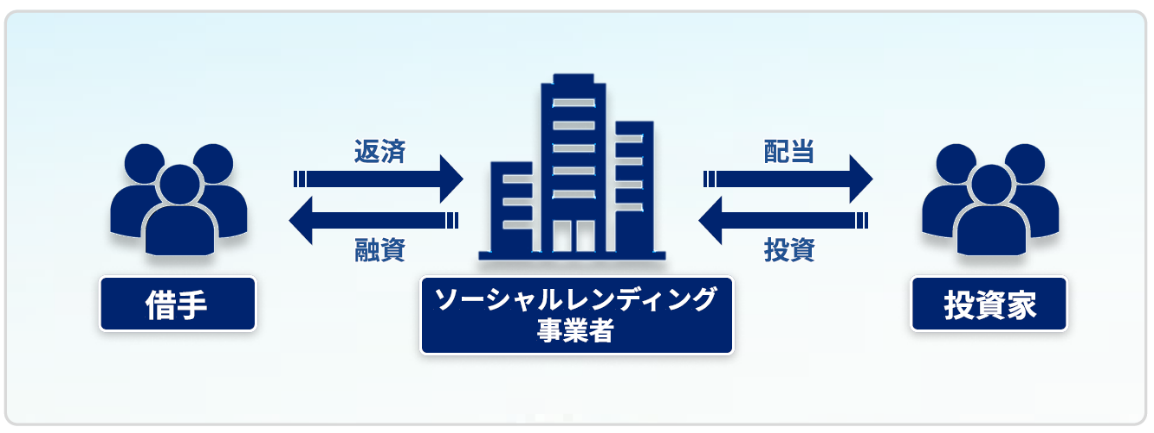 ソーシャルレンディングとは、資産運用をしたい人(投資家=お客様)と、お金を借りたい企業(借り手)とをインターネットを介してつなぐサービスです。別名、融資型クラウドファンディングとも呼ばれるクラウドファンディングの一形態です。 クラウドファンディングでも馴染みが深いのは、新しく開発される商品やサービス等に先行して資金を投じるタイプのもので、あとからリターンとしてその商品やサービスを享受できる点に特徴があります。一方、融資型クラウドファンディングでは、関心がある事業に出資し、リターンとして利息を受領できることが特徴となります。投資家にとっては、銀行預金などに比べても高い利率のリターンも得られる可能性があるため、一つの投資のスタイルとしても定着しています。