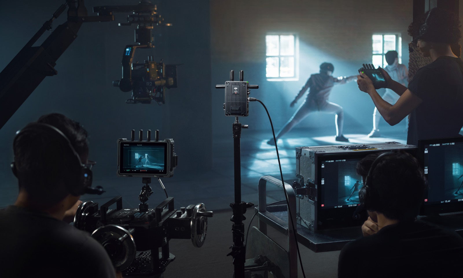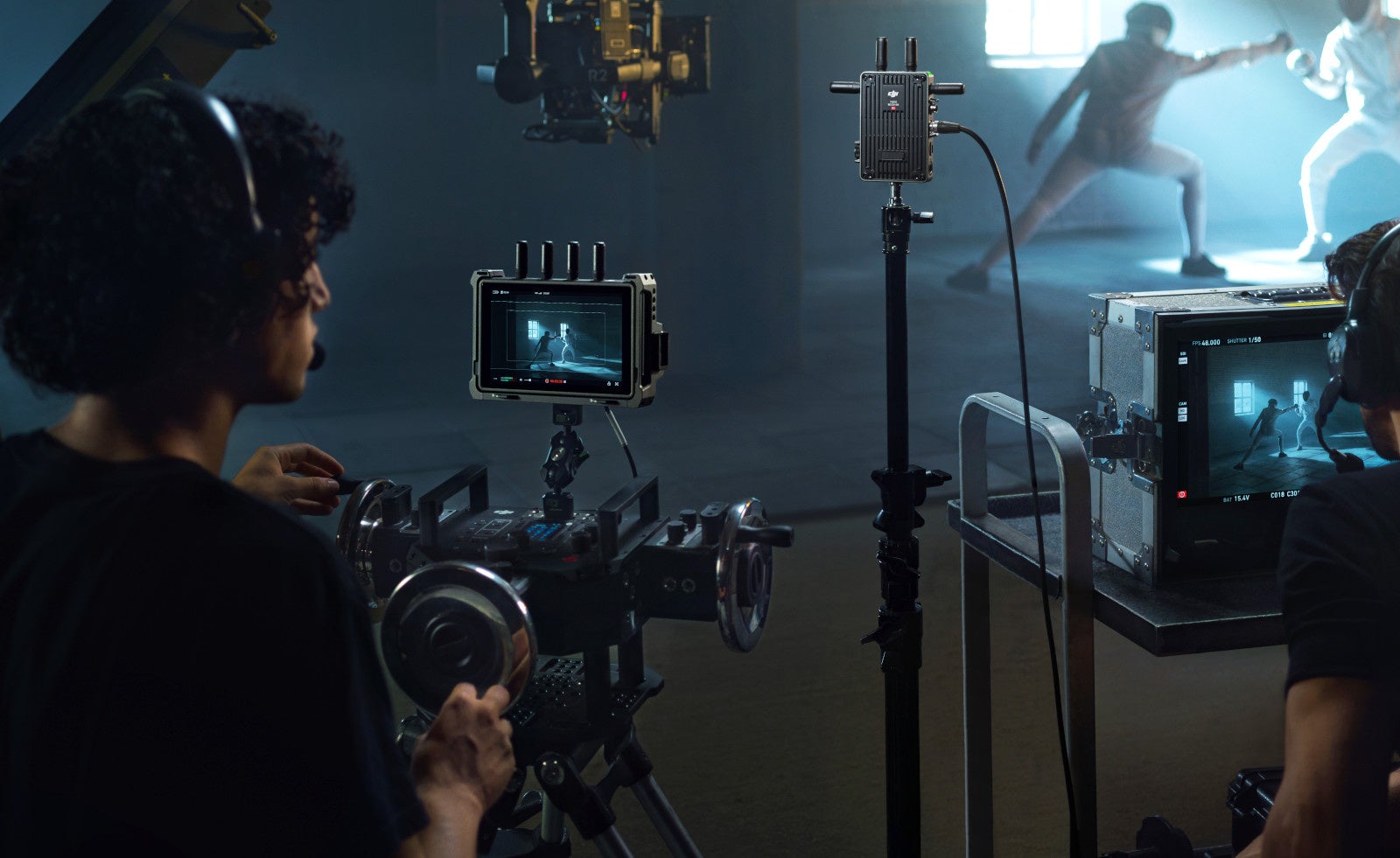 DJI Master Wheelsや他の制御デバイスを接続するには、映像レシーバーもしくは高輝度遠隔モニター上で制御モードを選択して、映像トランスミッターとリンクします。Ronin 2 や RS 3 Pro、カメラのフォーカス調整は、最大2台のレシーバー側で遠隔操作することができ、配信モードで接続された他のデバイスには影響しません。加えて、映像レシーバーは、リアルタイムでの1対1長距離音声伝送が可能なボイスコールに対応し、撮影監督、ディレクター、クライアントとのシームレスなコミュニケーションを実現します。