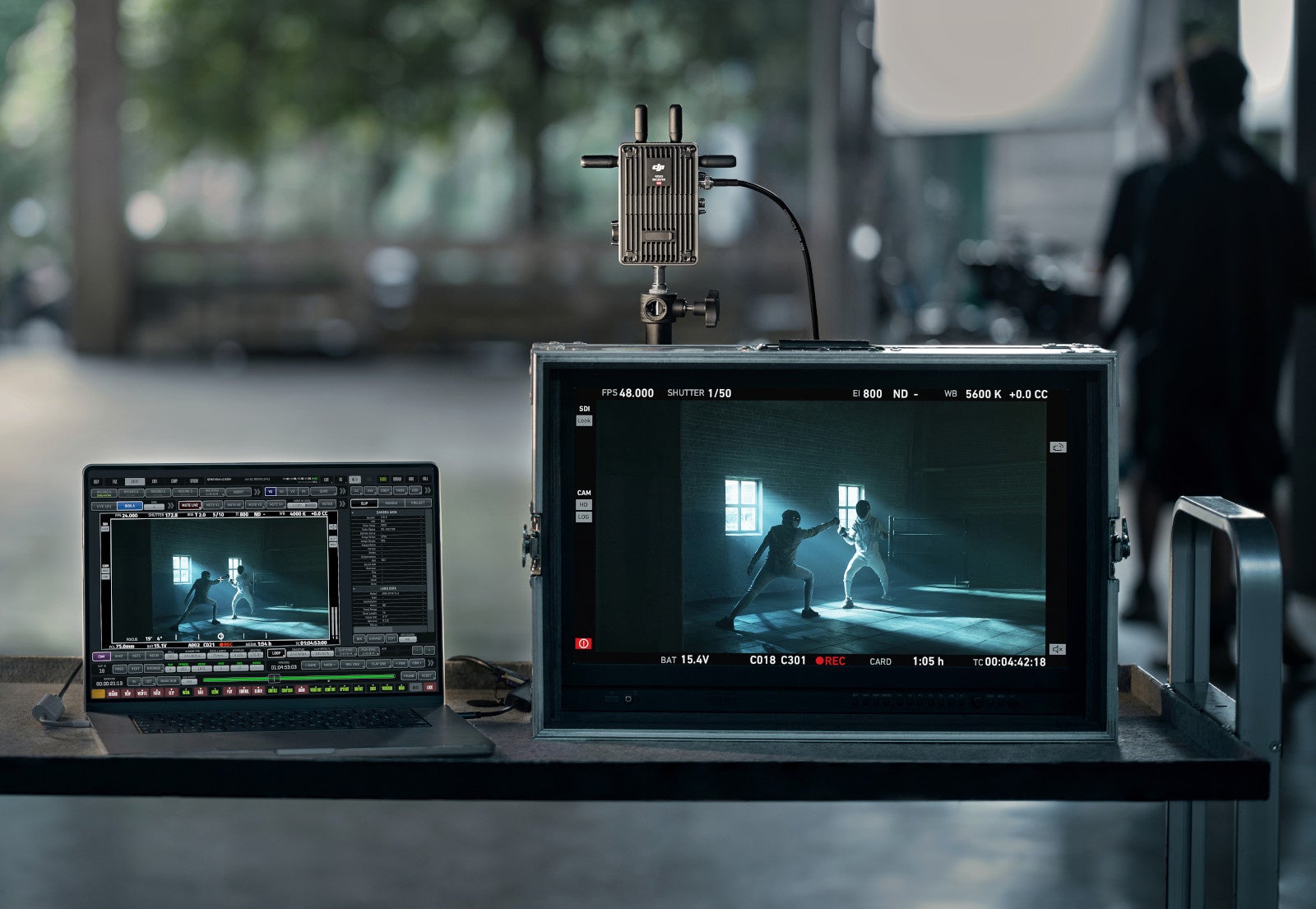 DJI 映像レシーバーは、SDI経由のカメラ メタデータ伝送に対応しています。ARRIやREDなどの主要なシネマカメラと併用すると、ファイル名、タイムコード、記録トリガー、カメラ設定(シャッター速度、ISOなど)、レンズ情報(絞り、焦点距離)などの情報を、レシーバーからモニターやQTAKEに伝送でき、ディレクター、映像作家、デジタルイメージングテクニシャンたちは撮影の詳細情報を現場で受け取れます。