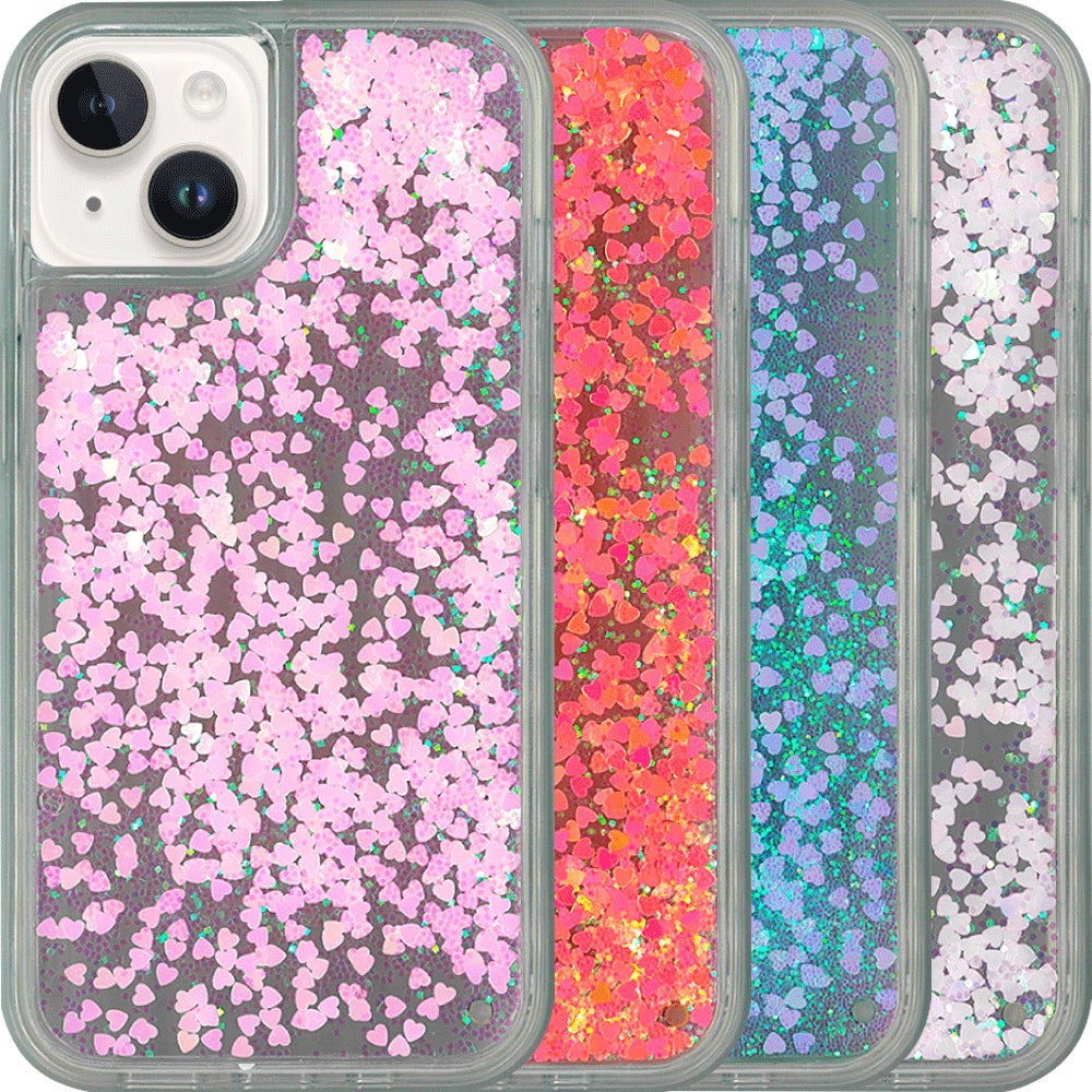 UP-Tの大人気商品スマホケースから新デザインが登場しました。ハートのグリッターとラメがケース内で動く、とってもキュートなケースです!お友達と色違いにするのもおすすめ!iPhoneの様々なサイズに対応しているのもうれしいポイントです。
