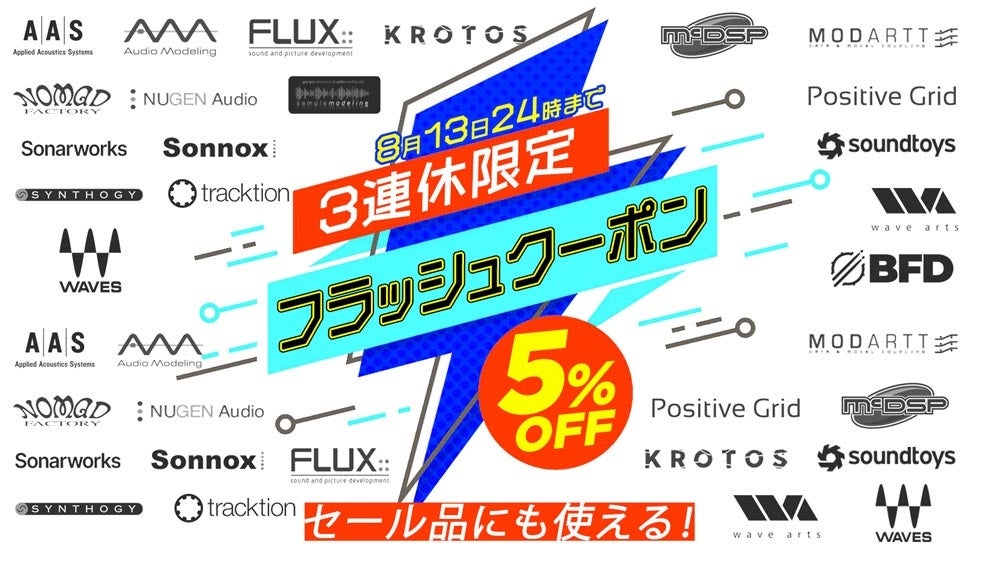 ソフトウェア音源やプラグイン・エフェクトなど、録音・音楽制作などに役立つ製品がさらにお得に!