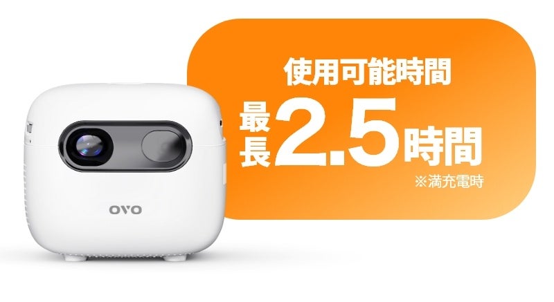 最長2.5時間(※音量50%で使用の場合)の使用が可能なポータブルバッテリーを内蔵。外出先での電源の確保など、そのような心配はもう不要です。