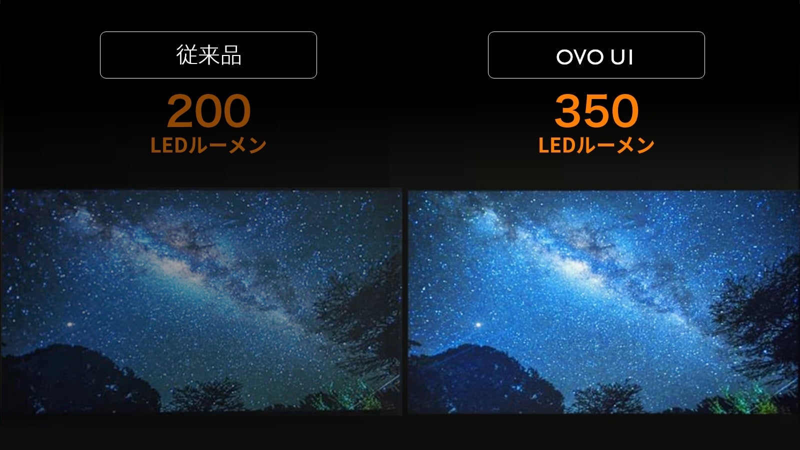 高輝度、高解像度4K映像入力やHDRに対応しているため、高画質の映像を再生することができます。さらに、プロジェクターから出力されるの光はLED350ルーメンと明るく、暗い場所でも鮮明な映像を楽しむことができます。