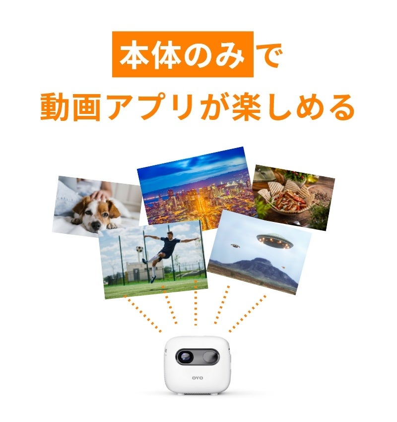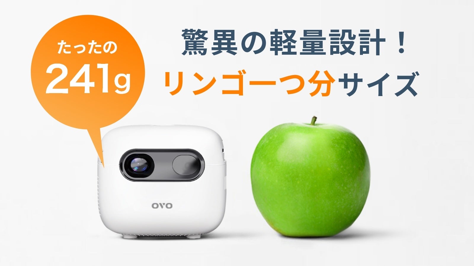 驚異の軽量設計、リンゴ一つ分の軽さとサイズ感。オフィスや外出先、そして家庭へと持ち運びも楽々。こんなに小さな見た目にも、高性能なプロジェクターとしての機能を兼ね備えています。ビジネスシーンの他、キャンプなどにも最適です。