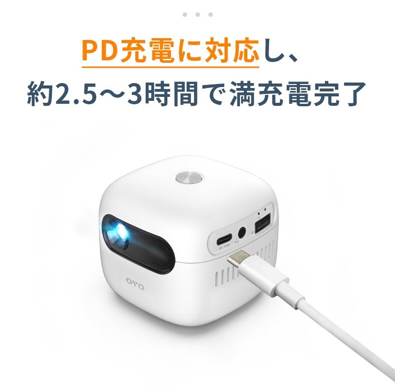 本体の背面に充電ポート等を設けていないフラットな形状の設計であるため、天井投影しリラックスしながら快適に楽しむことも可能です。
