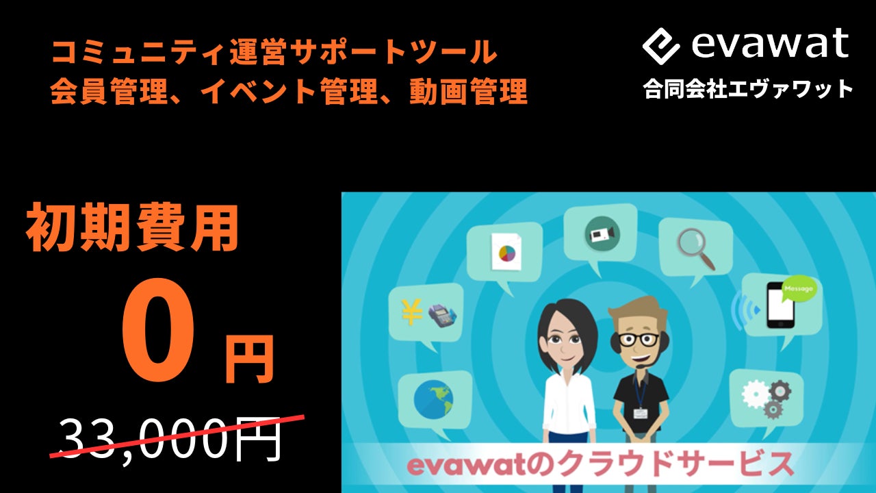 交流会主催者やセミナー講師業やオンラインサロン運営者の方などイベント管理や参加者管理を行う方がお得で便利にコミュニティ運営ができるように8月7日〜8月31日までに契約されたお客様を対象に「evawat(エヴァワット)」の初期費用33,000円が無料になるキャンペーン中です。