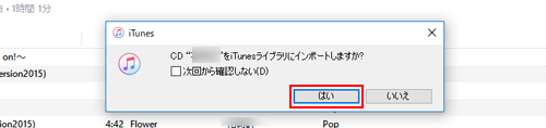 Step3.iTunes上で「CD『〇〇』をiTunesライブラリにインポートしますか?」というメッセージが表示された場合、「はい」を選択してください。