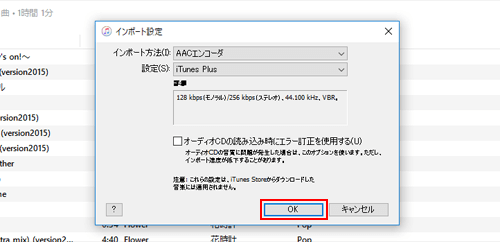 Step4.「ファイル形式」や「音質」といった設定を調整した後、設定を確定するために「OK」ボタンをクリックすると、インポートが開始されます。