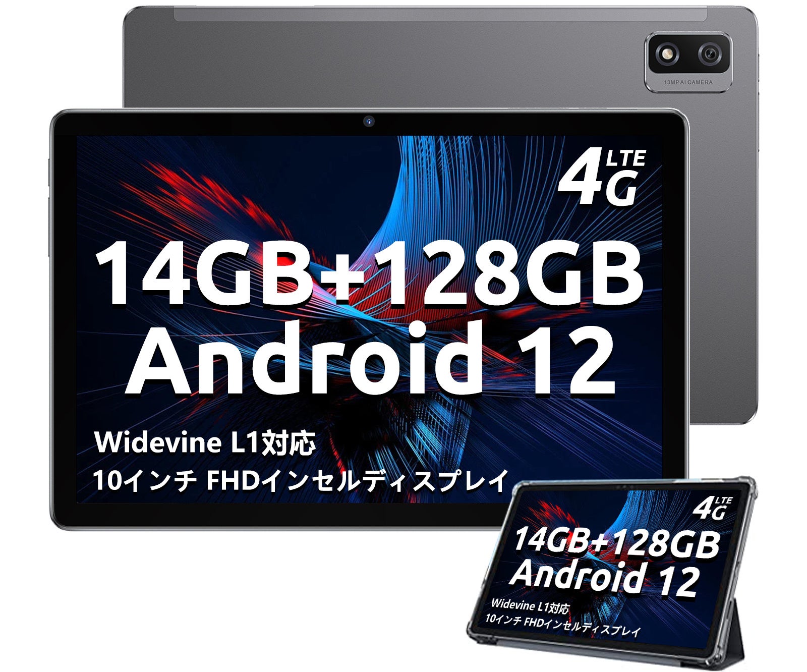 - 10インチ / Android 12 / 14GB+128GB+1TB拡張 / FHD IPS インセルディスプレイ / Widevine L1対応 / 13MP+5MPカメラ / 4G LTEモデル / GPSサポート