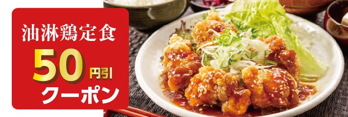 宮本むなし公式アプリでは、販売期間中に何度でも使える「油淋鶏(ユーリンチー)定食 50円引きクーポン」を配信いたします。会員の方限定でご利用いただけるクーポンですので、この機会にぜひ宮本むなし公式アプリをダウンロード&会員登録ください。