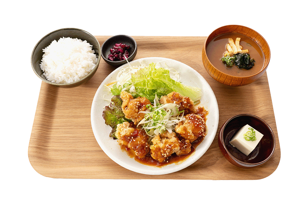 暑い日でもおいしく召し上がっていただける、宮本むなしの油淋鶏定食をお楽しみください。
