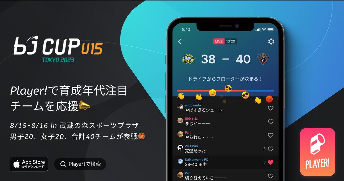 注目が集まる育成世代を応援するスポーツファンや大会関係者、現地に訪れることができない保護者のみなさんにPlayer!の仕組みをご活用いただき応援の声を届けられるようサポートして参ります。