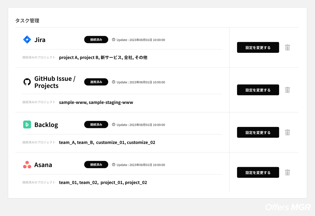 ソフトウェア開発を行う際、開発者は開発タスクをツール上で管理をしています。中でも、Asanaは、グローバルで業界や企業規模に関わらず多くの企業で取り入れられているサービスであることから、Offers MGRとの連携を開始するに至りました。
