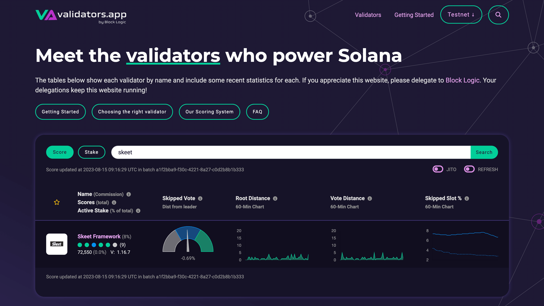 Skeet チームは Solana のバリデーターとして活動することで、ブロックチェーンネットワークの安全性や効率性を高めるとともに、トランザクションの承認やブロックの生成に参加します。