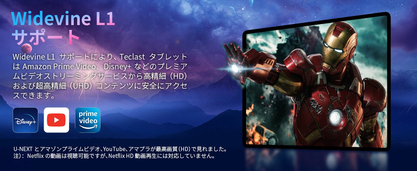 BMAX I9Plus タブレットは、高いパフォーマンスと高い電力効率を両立させています。さらに、5000mAhの大容量バッテリーを搭載し、最大5時間の1080p動画を再生することができます。長持ちする待機時間は、通勤途中や出張、旅行のときにも気軽に使うのに最適です。Widevine L1 をサポートしています!