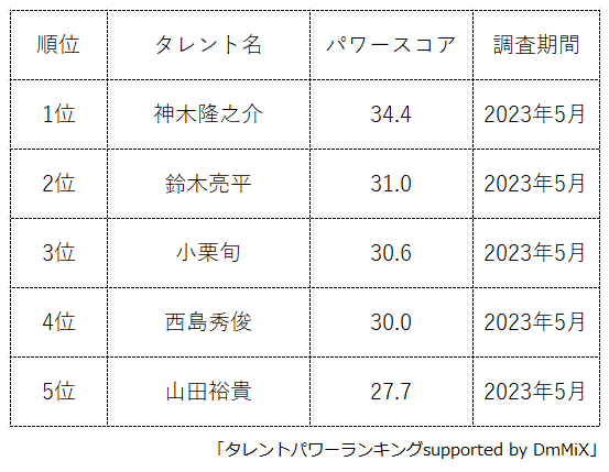 本ランキングは、2023年5月度に実施したタレント調査データ(一部過去実施データ)を利用し、タイトルに応じてランキング形式でまとめたものです。