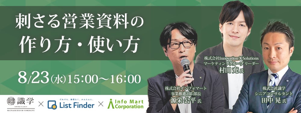 について、それぞれのノウハウを持っている3社が集まって解説します。「全員で成果を上げる営業組織」を作りたいとお考えのご責任者さま、必見です。