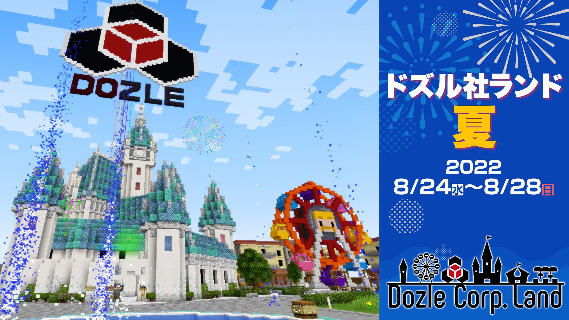 本イベントは、今年3月にドズル社が新たな試みとして開催したゲーム「Minecraft」のJava版限定での参加型有料サーバー『ドズル社ランド』の第2弾として、今回は夏の季節感も加えたワールドにパワーアップさせて開催いたします。