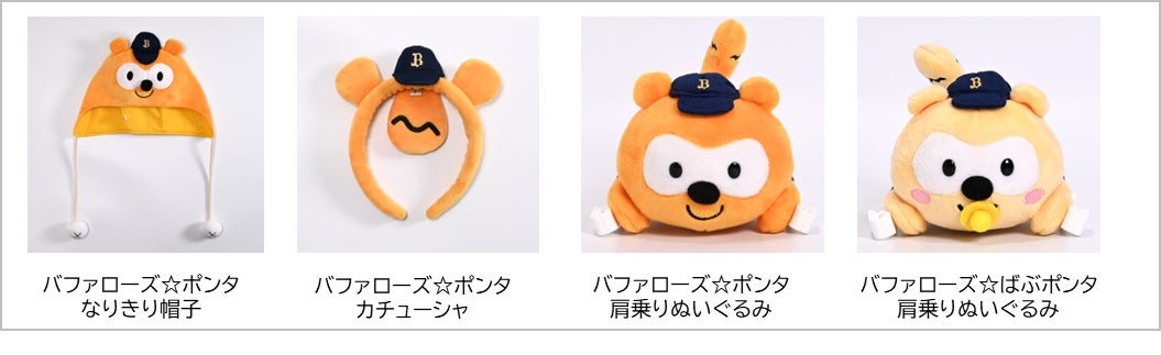 試合当日、バファローズ☆ポンタグッズを身に着けて応援することをバファローズ☆ポンタ公式Twitter(@bs_ponta)でファンの皆様に呼びかけ、コーディネート例をご提案しております。またバファローズ☆ポンタになりきることができる帽子やカチューシャ、肩に乗せるぬいぐるみを発売いたします。