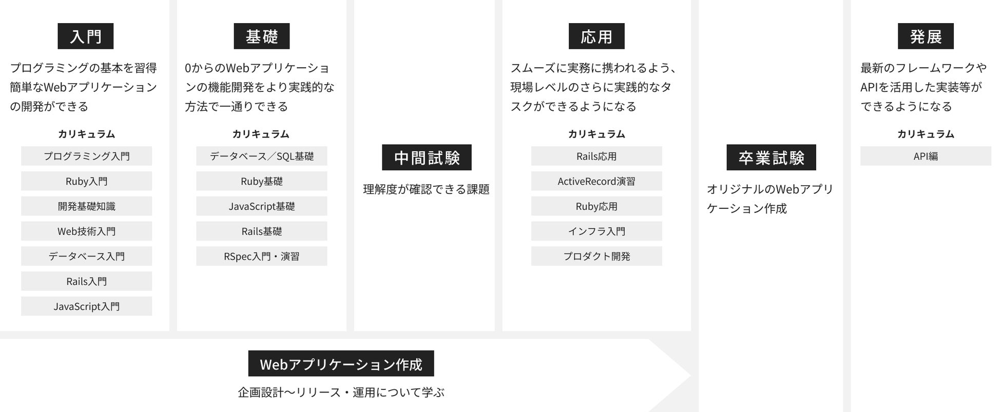 「Webエンジニア転職コース Ruby on Rails専攻」は、Web系企業から求められるプログラミングスキルや、エンジニアとして必要なスキル習得に特化したコースです。市場で求められるエンジニアになるために、プログラミング未経験から本気でWeb系企業就職を目指す方を支援いたします。