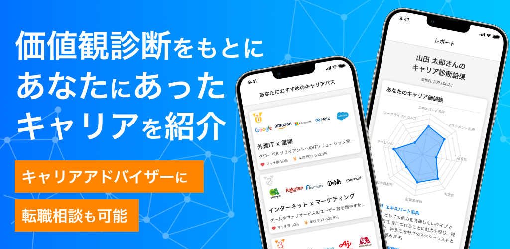 キャリア診断をもとに、あなたの価値観にあったキャリアと求人を紹介します。