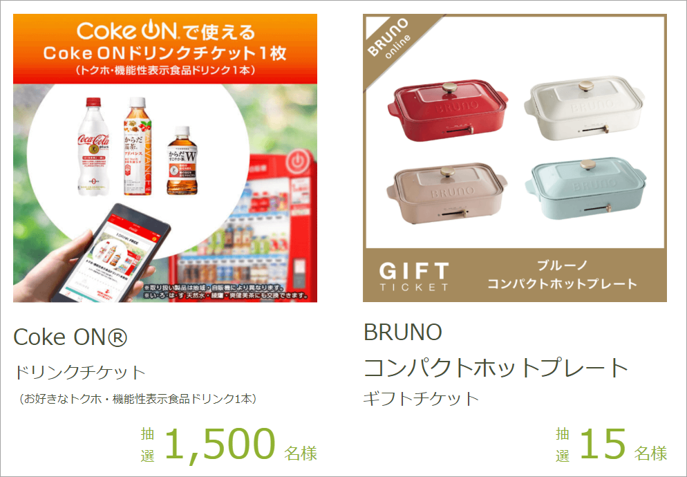 対象のツイートをしてくださった方の中から抽選で15名様に【BRUNO】コンパクトホットプレート ギフトチケットをプレゼントするほか、抽選で1,500名様にCoke ON®ドリンクチケット1枚をプレゼントします。