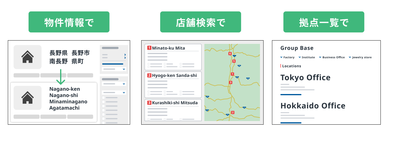 特に賃貸等の不動産サイト、多店舗展開している小売店サイトや宿泊予約サイト、飲食・観光業界などの情報サイトにおいては、取り扱い物件や運営施設の住所表記が数多く存在します。「高精度住所翻訳」機能をもつ WOVN.io をご利用いただくことで、高精度かつスピーディな言語切り替えが可能となるため、「人手をかけずに」「多言語で」届けたい情報を届けられるようになります。