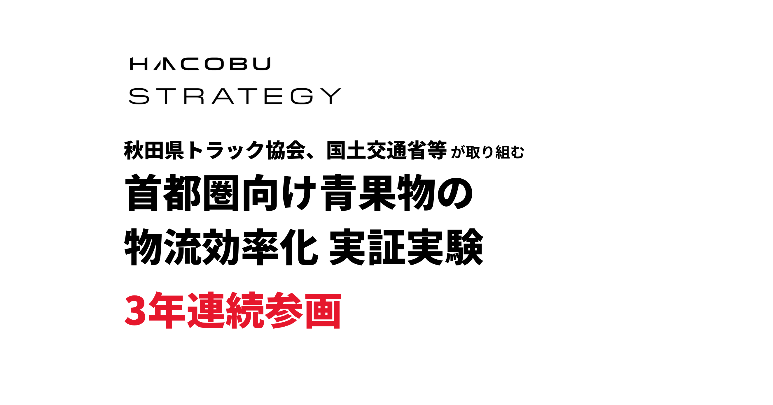 秋田県トラック協会は、近い将来、長距離輸送に係る物流網の維持や、首都圏向けの輸送が困難になるかもしれないという問題意識から、2019年11月、秋田県に「秋田の未来の物流を考える協議会(現:秋田未来物流協議会)」を立ち上げ、早期に問題解決に向けた議論及び実証実験を進めてきました。