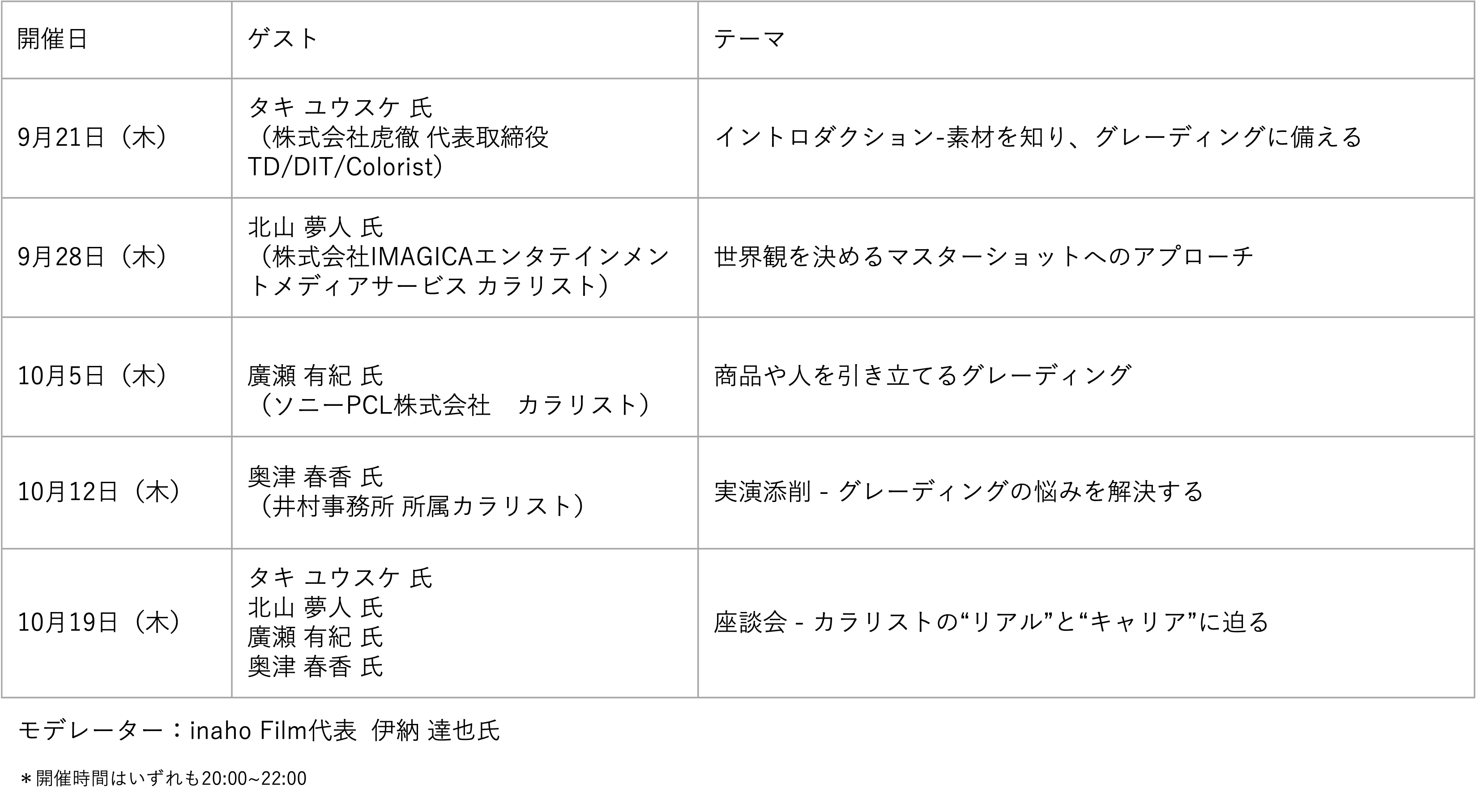 今回のVook Master Studio カラリストクラスは、映像業界の第一線で映画やドラマ、TVCMなどを担当されているカラリストの方々をお招きし、プロフェッショナルとしてのカラリストの仕事術をさまざまな角度からお聞きできる、これからカラリストを目指したいと考えている方にとってはまたとない機会だと思います。ぜひ楽しみにお待ちください!