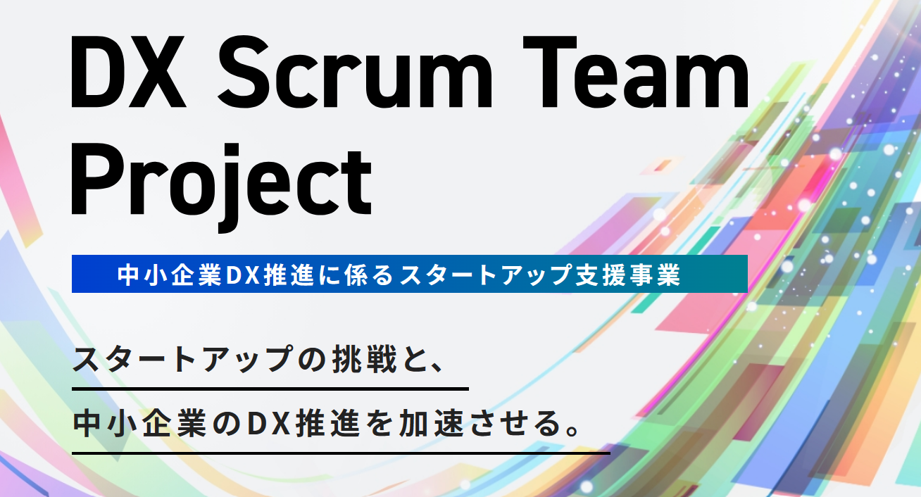 DX Scrum Teamプロジェクトは、東京都による事業です。スタートアップと中小企業がスクラムを組み、実証実験や成果検証に取り組む機会を提供することによってスタートアップの革新的なビジネスモデルの実装、中小企業のDXを推進することを目的としています。