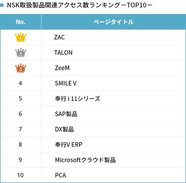 アクセス数ランキングの中でも、NSK取扱製品のランキングも発表しております。