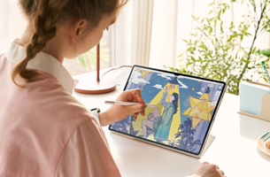 Galaxy Tab S9シリーズは、ダイナミックAMOLED 2Xディスプレイの高画質をを生かして、自由にアイデアを膨らませるのに最適の製品ですが、紙とペンのような描き心地を実現するSペンを使うと、アイデア表現にさらに磨きがかかります。Sペンは、検索バー、ブラウザー、アプリストアにも書き込むことができ、クレードルに取り付ける際の方向を気にすることなく充電可能です。また、握り心地の良いテクスチャー素材を採用し、検出可能なペンの傾斜角度も広く、直感的な描き心地をさらに高めたS ペン クリエイター・エディション(3)へのアップグレードも可能です。