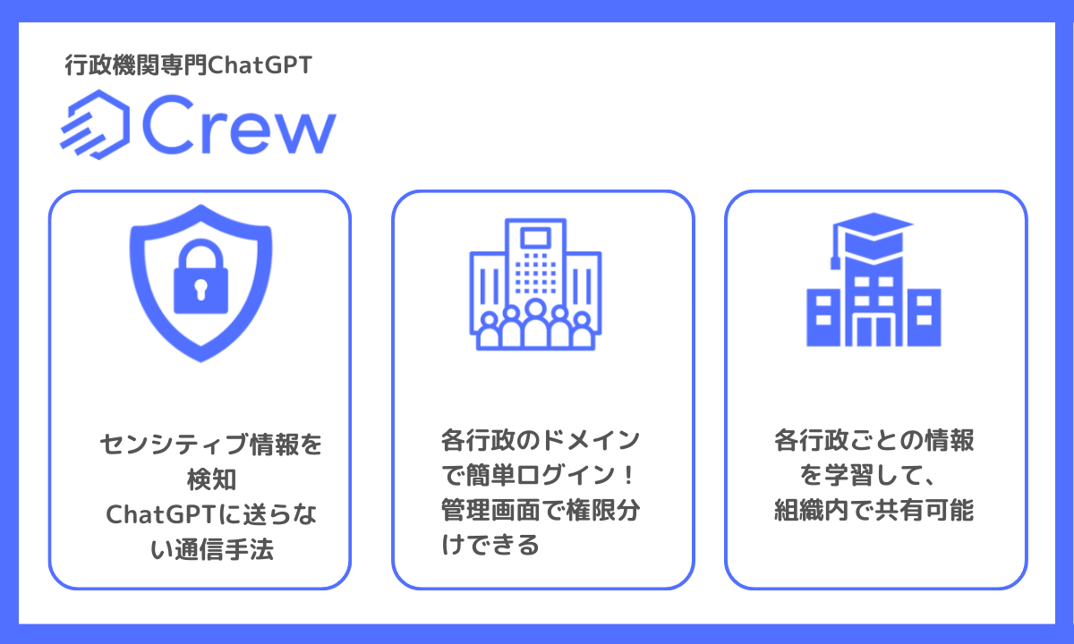 「Crew 」は、企業・行政がChatGPTを手軽に安全に使えるサービスです。