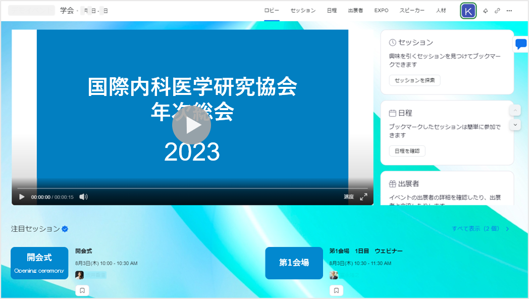 •前述の「Zoom Sessions」の特長に加え、1日のみや複数日にまたがるイベント、複数セッションの同時開催など、多彩なイベントの開催が可能です。 •「Zoom Sessions」同様 決済システムが備わっており、有料、無料、当日券など、多種多様なチケットの販売が可能です。 •イベントのスポンサーの掲載・紹介が可能です。 •複数セッションを横断し、参加者全体でコミュニケーションが可能な「ロビーチャット」機能を搭載。 •展示会などで利用できるEXPO機能を搭載。